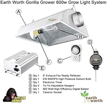 Earth worth 600 watt gorilla grower grow light kit high pressure sodium bulb kit for hydroponics expand houseplants in every space of the home every single place of the residence delivers a distinctive natural environment, so come to a decision which area most fits a plant's wants.